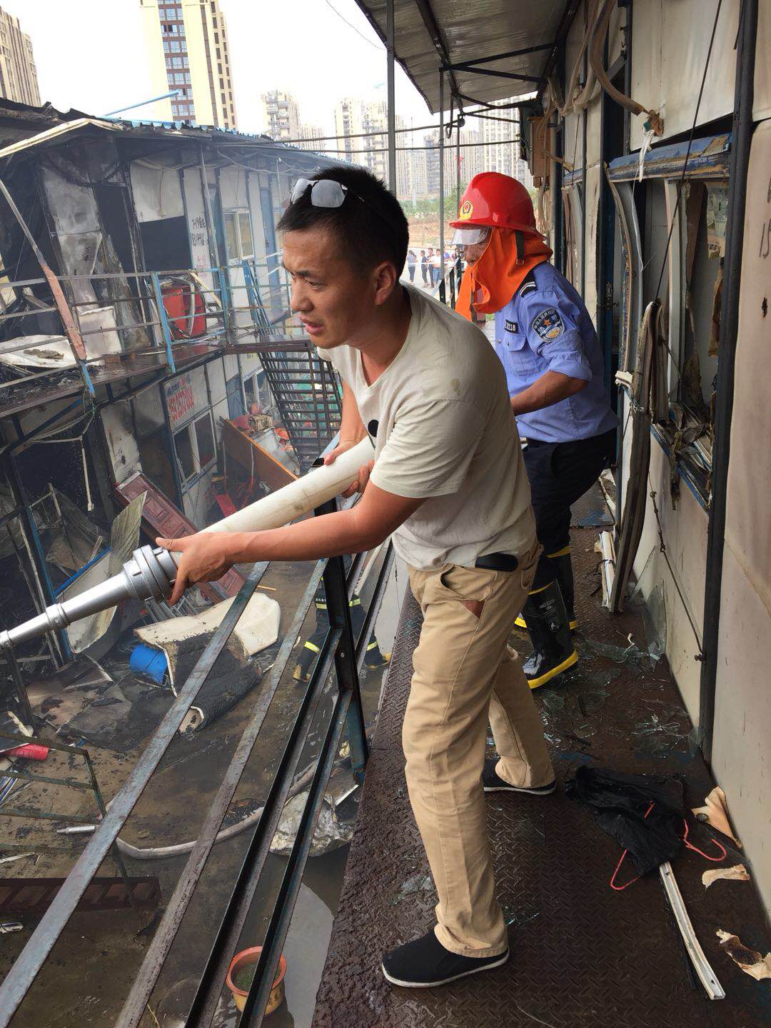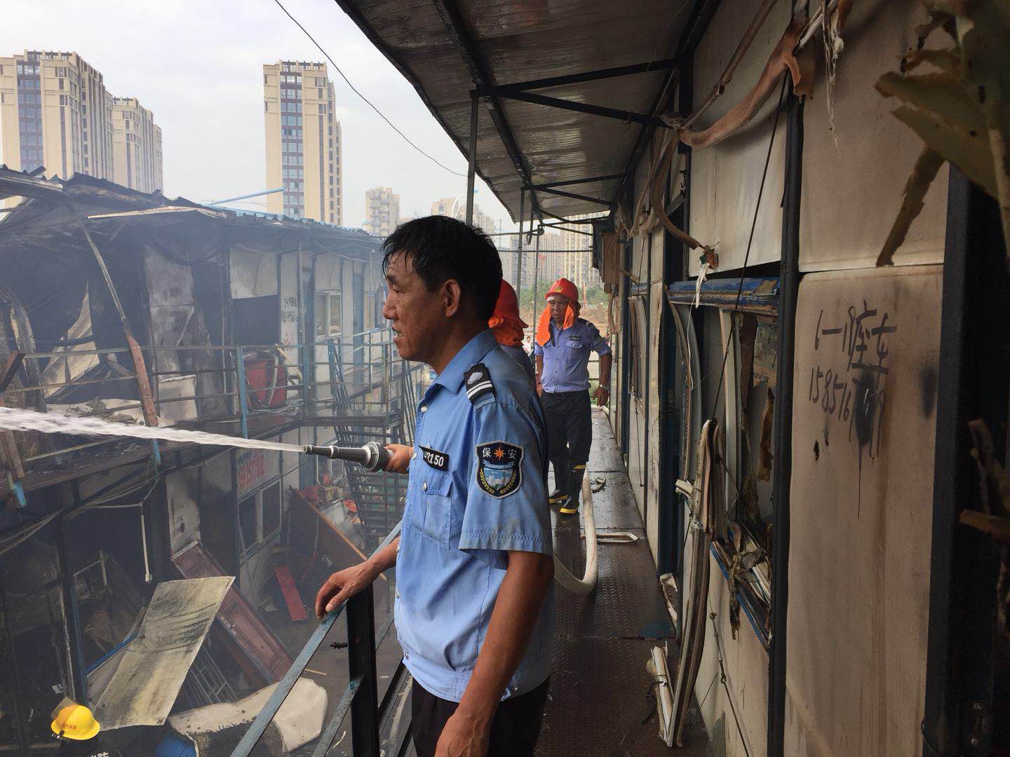 2017年9月25日下午14点左右,新昌分公司客户单位红星美凯龙隔壁的建筑工地工棚突然发生火灾,驻点队员在班长张正贤的指挥带领下,立即启动消防应急预案,携消防设施赶到火灾现场,对初期火灾进行扑救,防止了火灾恶化,控制了火灾现场,为县消防部门及时到达现场进行火灾处理工作争取了宝贵时间,保障了火灾现场无人员伤亡,挽回经济损失几十万,得到了相关单位的好评与肯定!