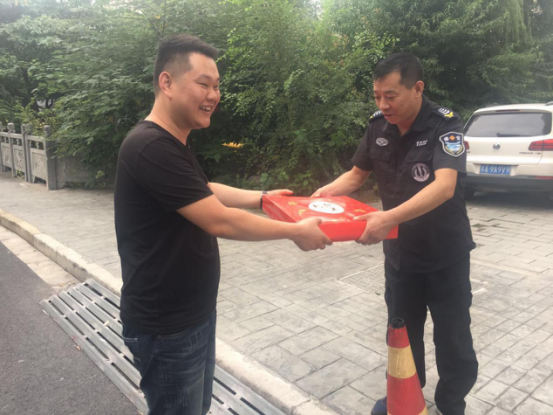 今年中秋恰逢国庆,假期也比往年长。为了慰问辛劳在一线基层的员工,2017.9.25-2017.9.27日,保安部经理邵乃杨携保安部大队长李杭伟、李龙歌赴三墩伟量基地(红星美凯龙)、杨岐精品城、三墩地铁施工现场等一线保安基地,给奋战在一线的员工送去中秋的福利,并对保安员在国庆期间的工作作出指示。